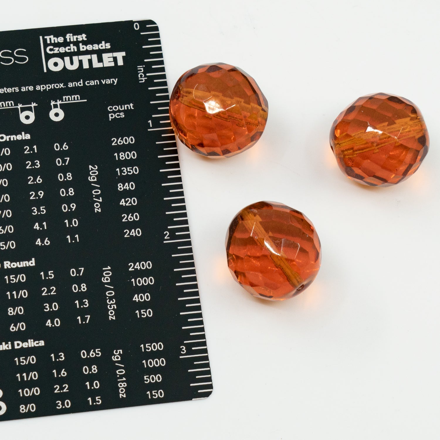 アウトレット 10グラム ファセットラウンドファイアポリッシュビーズ、透明ブラウン(10090)、ガラス、チェコ共和国