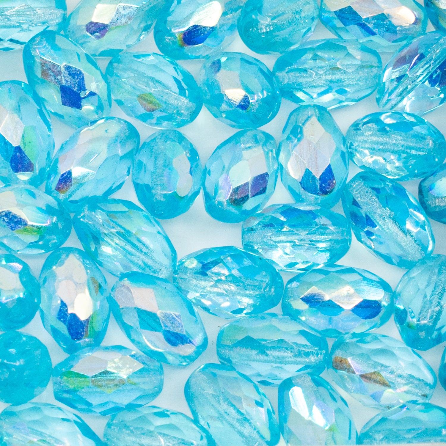 アウトレット 10グラム オーバルファセットビーズ、12 x 8 mm、透明アクアAb(60000-28701)、ガラス、チェコ共和国