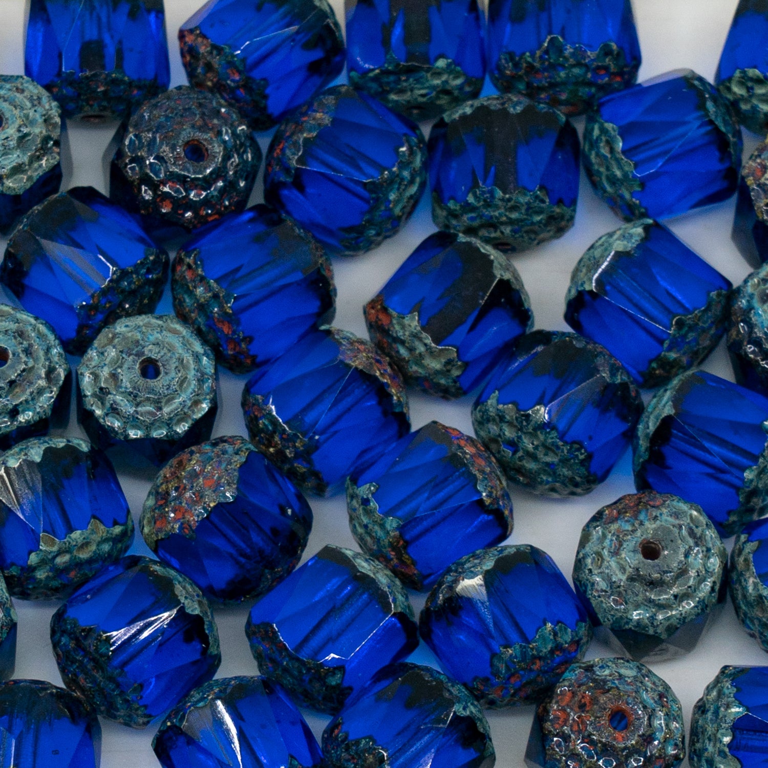 アウトレット 10グラム カテドラルファセットファセットファイアポリッシュビーズ、10 x 10 mm、コバルトステインストロング(30050-86805)、ガラス、チェコ共和国