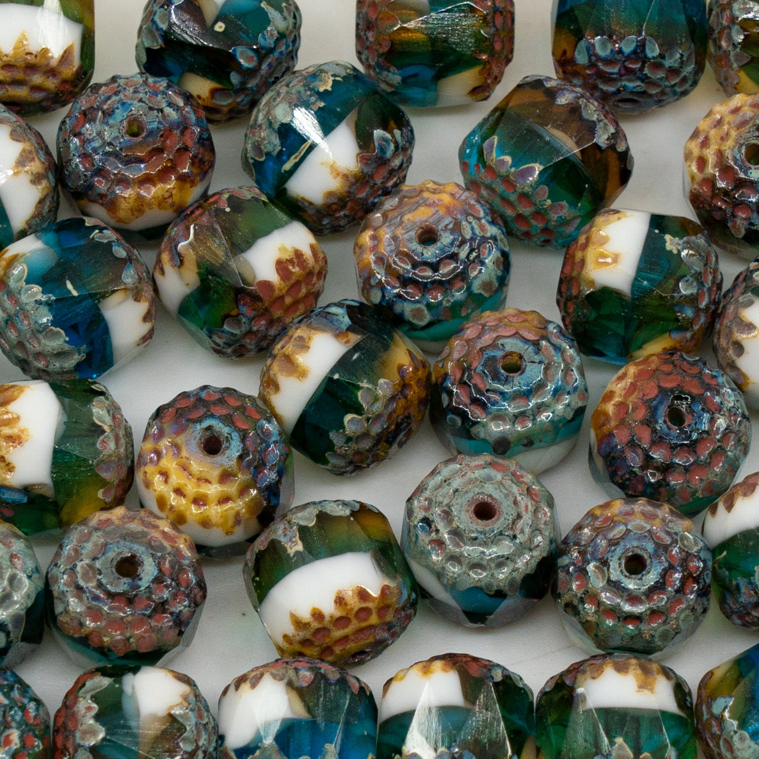 アウトレット 10グラム カテドラルファセットファセットファイアポリッシュビーズ、10 x 10 mm、T0050 ステインストロング(t0050-86805)、ガラス、チェコ共和国