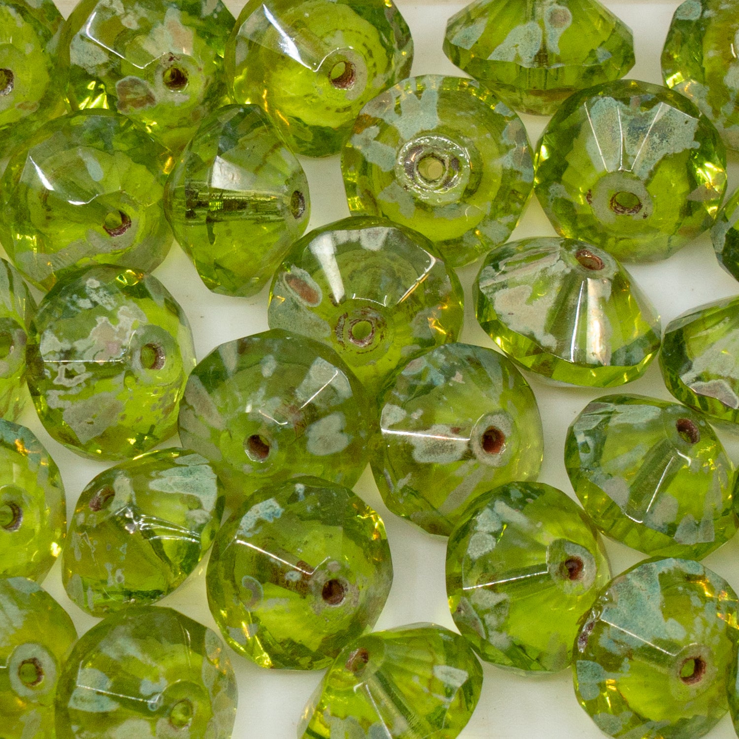 アウトレット 10グラム ファセットスペシャルカットビーズ、9 x 14 mm、透明グリーンピカソ(50200-43400)、ガラス、チェコ共和国
