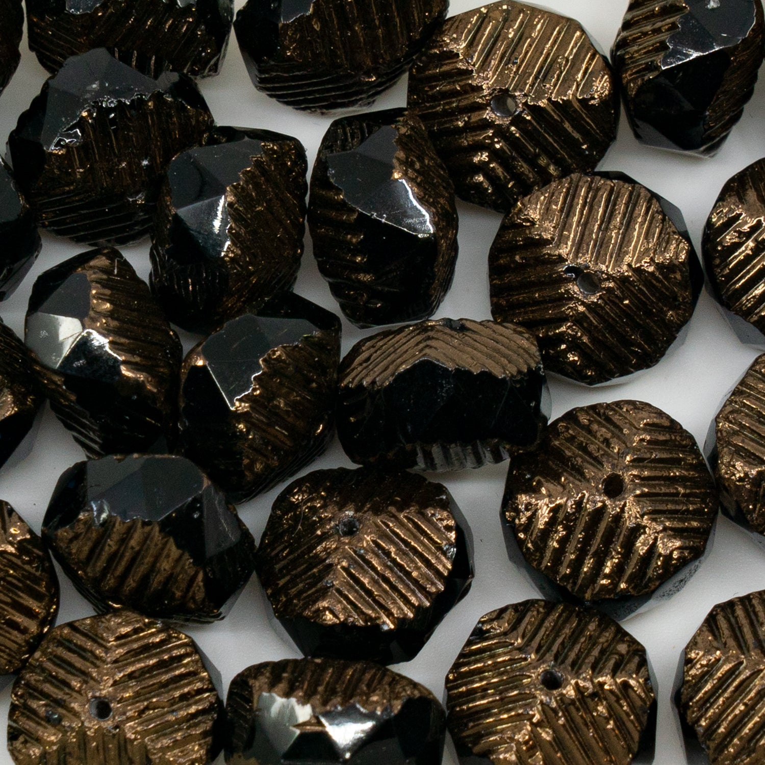 アウトレット 10グラム ファセット加工スペシャルロンデルビーズ ファイアポリッシュ 10 x 14 mm 透明グレーブロンズ (40020-14415) ガラス チェコ共和国