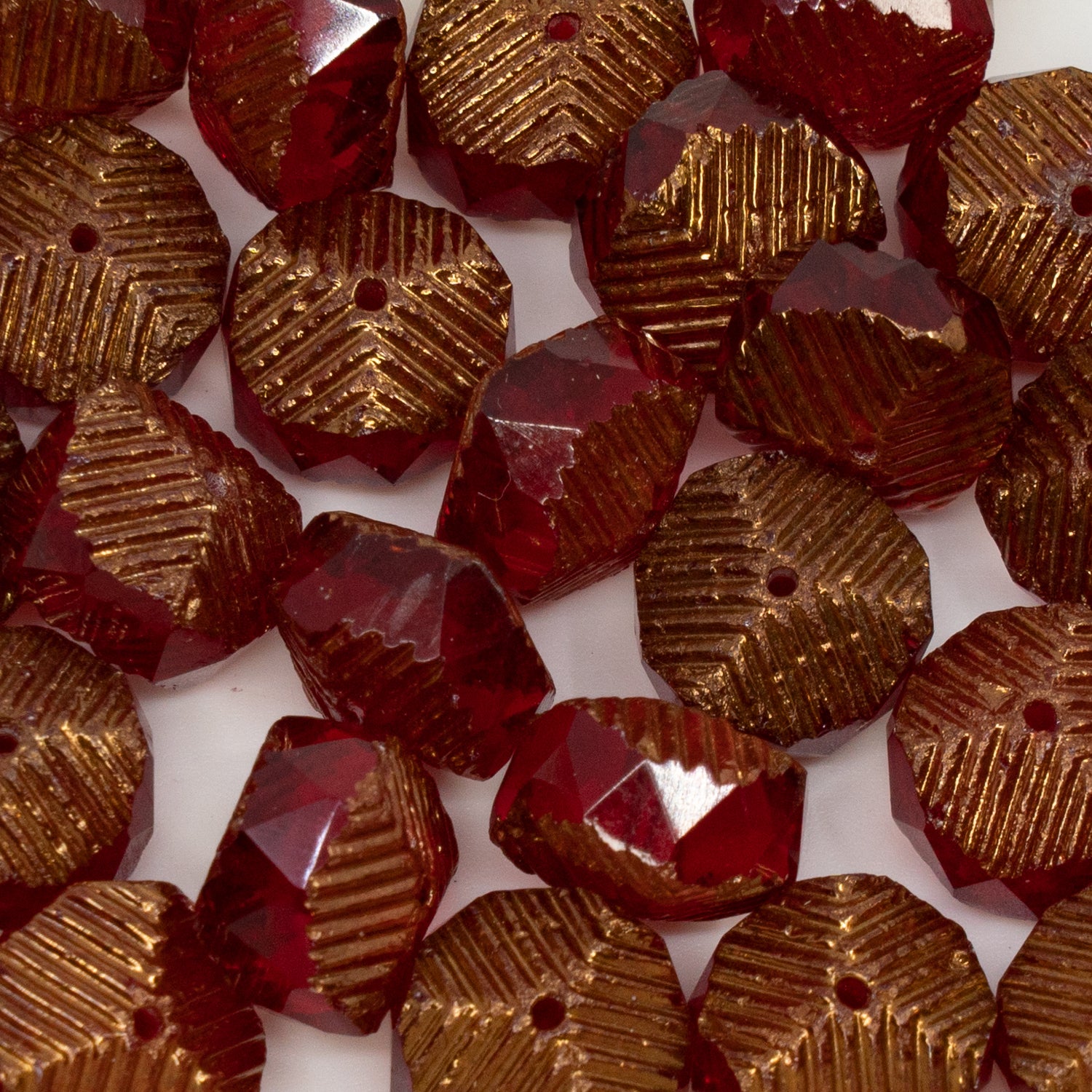 アウトレット 10グラム ファセット加工スペシャルロンデルビーズ ファイアポリッシュ 10 x 14 mm ルビーレッドブロンズ (90080-14415) ガラス チェコ共和国