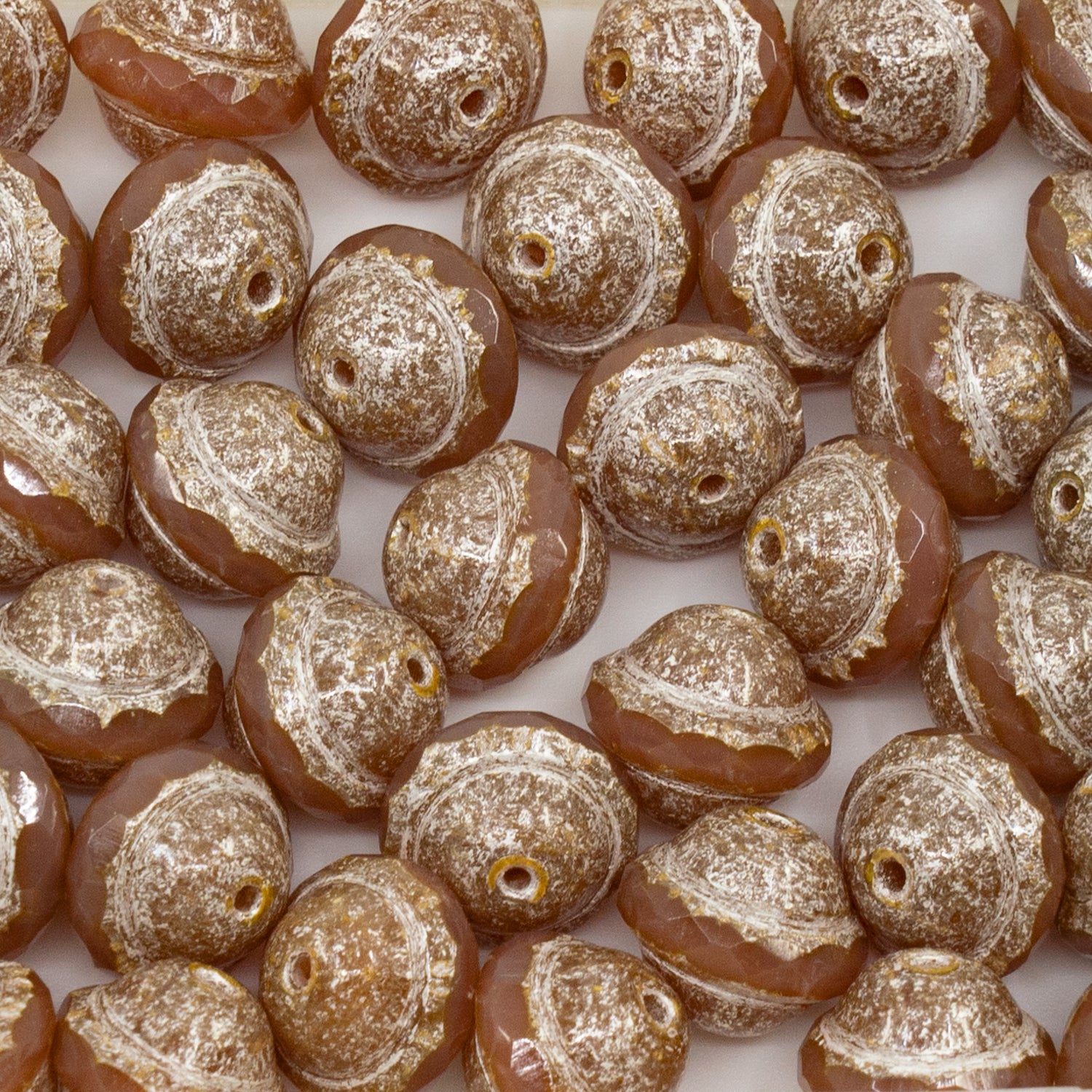アウトレット 10グラム ファセットスペシャルカットビーズ、10 x 12 mm、オパールピンクアンティークシルバーパティーナ(71010-81002)、ガラス、チェコ共和国