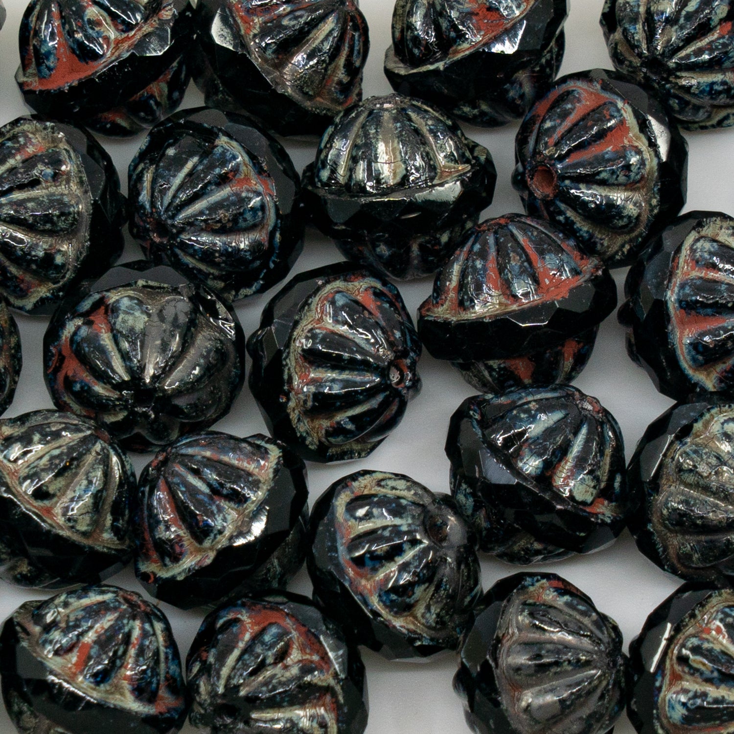 アウトレット 10グラム ファセットスペシャルカットビーズ、12 x 14 mm、ブラックステインストロング(23980-86805)、ガラス、チェコ共和国