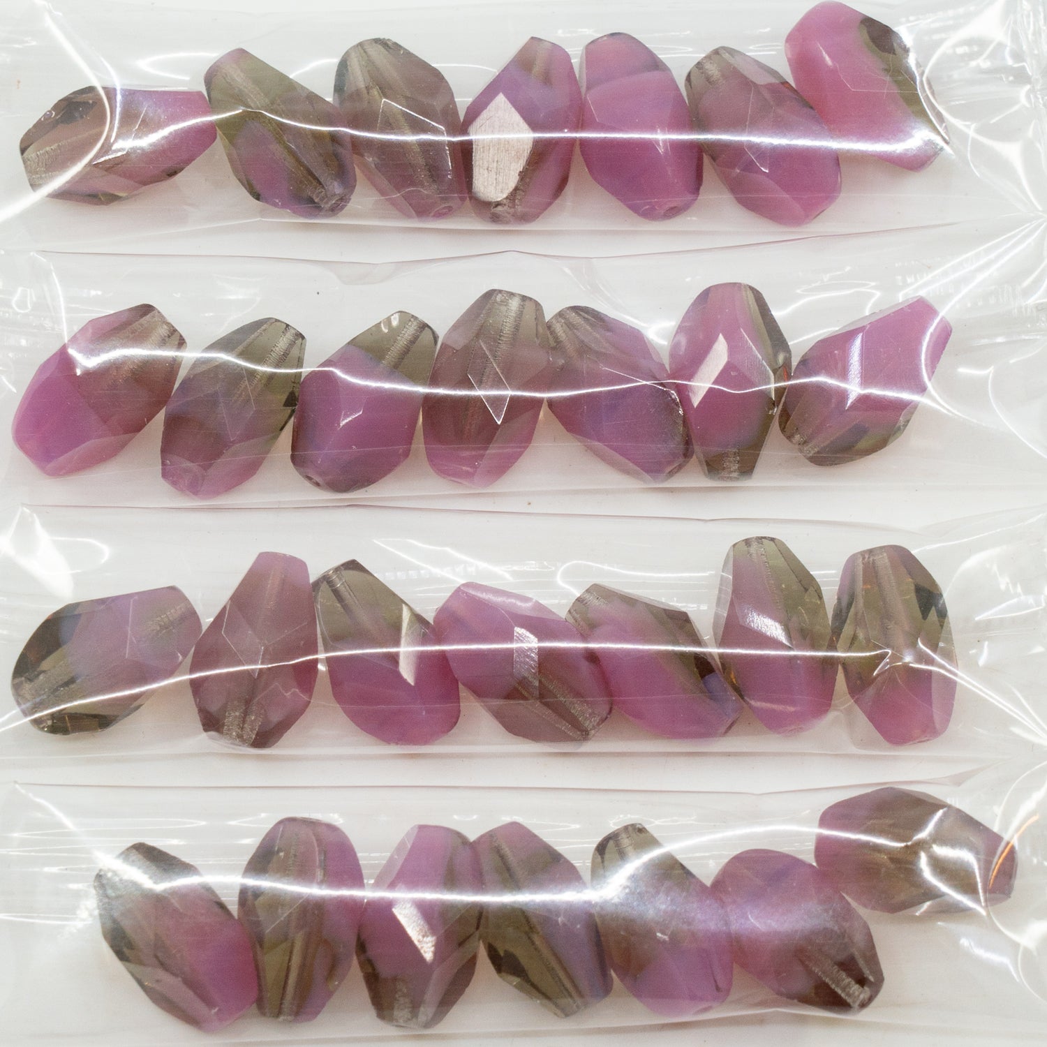 アウトレット 10グラム ファセットスペシャルカットビーズ、15 x 10 mm、ミックスピンクグレー(s0020)、ガラス、チェコ共和国