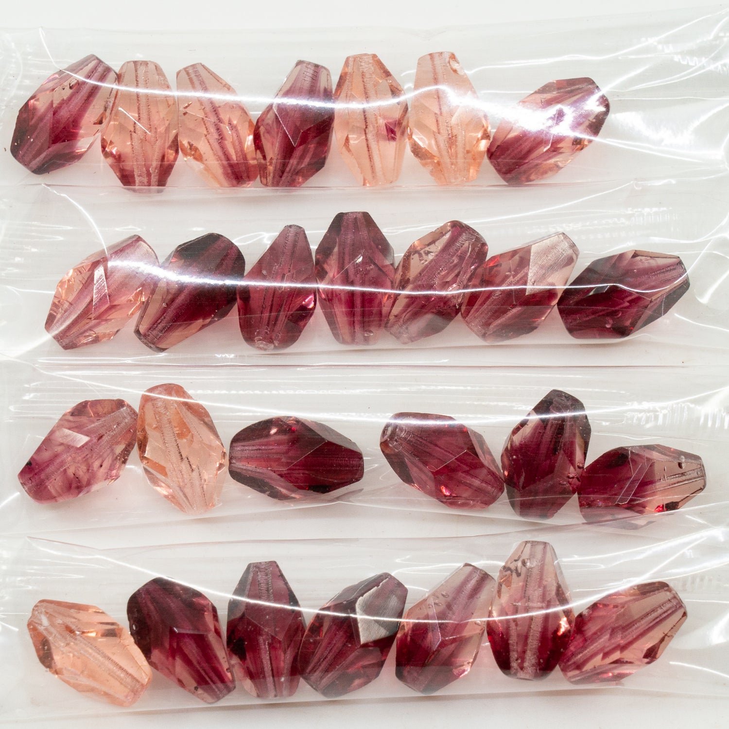 アウトレット 10グラム ファセットスペシャルカットビーズ、15 x 10 mm、ミックスピンク(t0250)、ガラス、チェコ共和国
