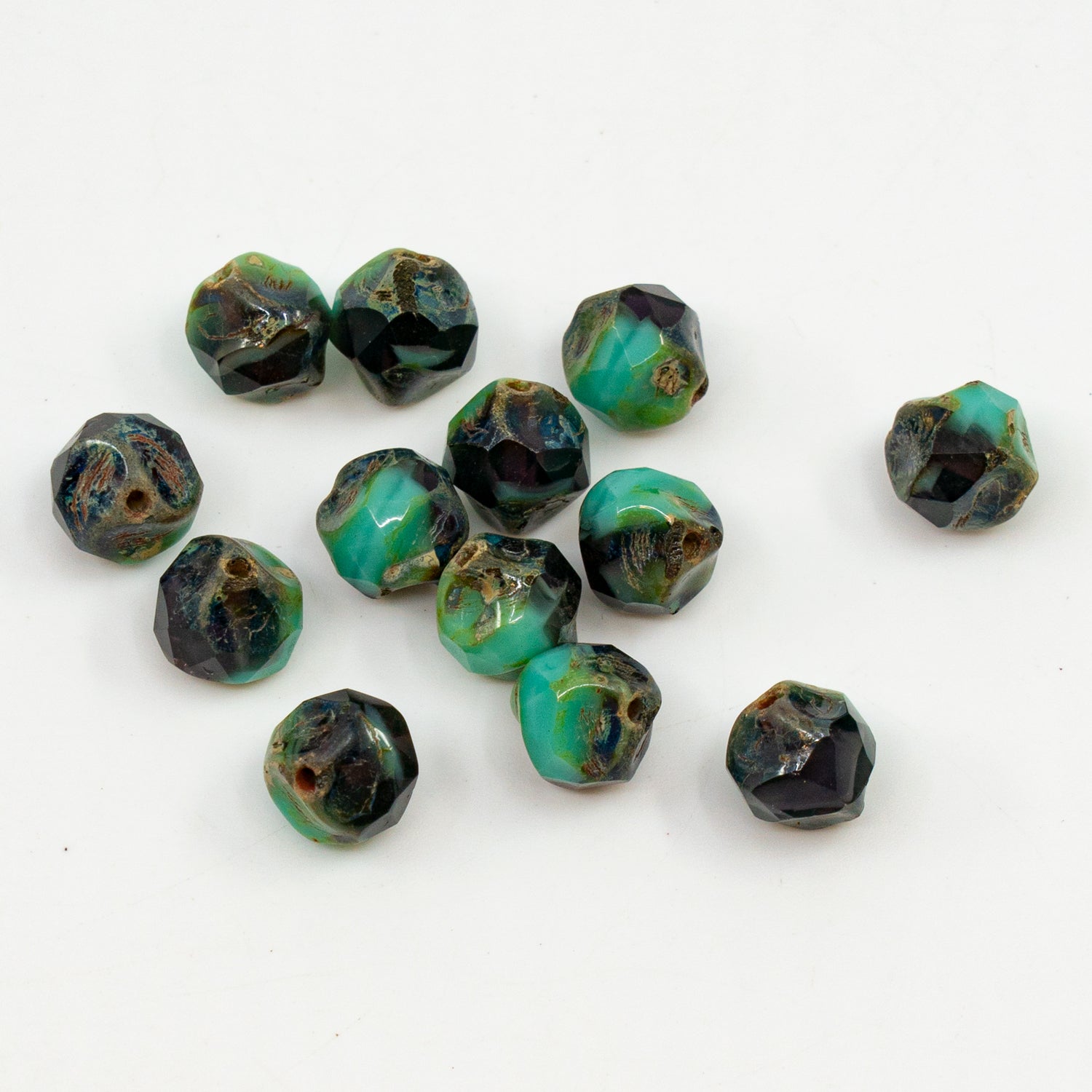 アウトレット 10グラム ファセットシェイプビーズ、ターコイズトラバーチン(turks-86800)、ガラス、チェコ共和国