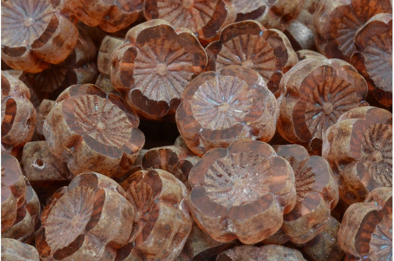 アウトレット 10グラム テーブルカットハワイフラワービーズ、14 x 14 mm、オパールピンクトラバーチン(71000-86800)、ガラス、チェコ共和国