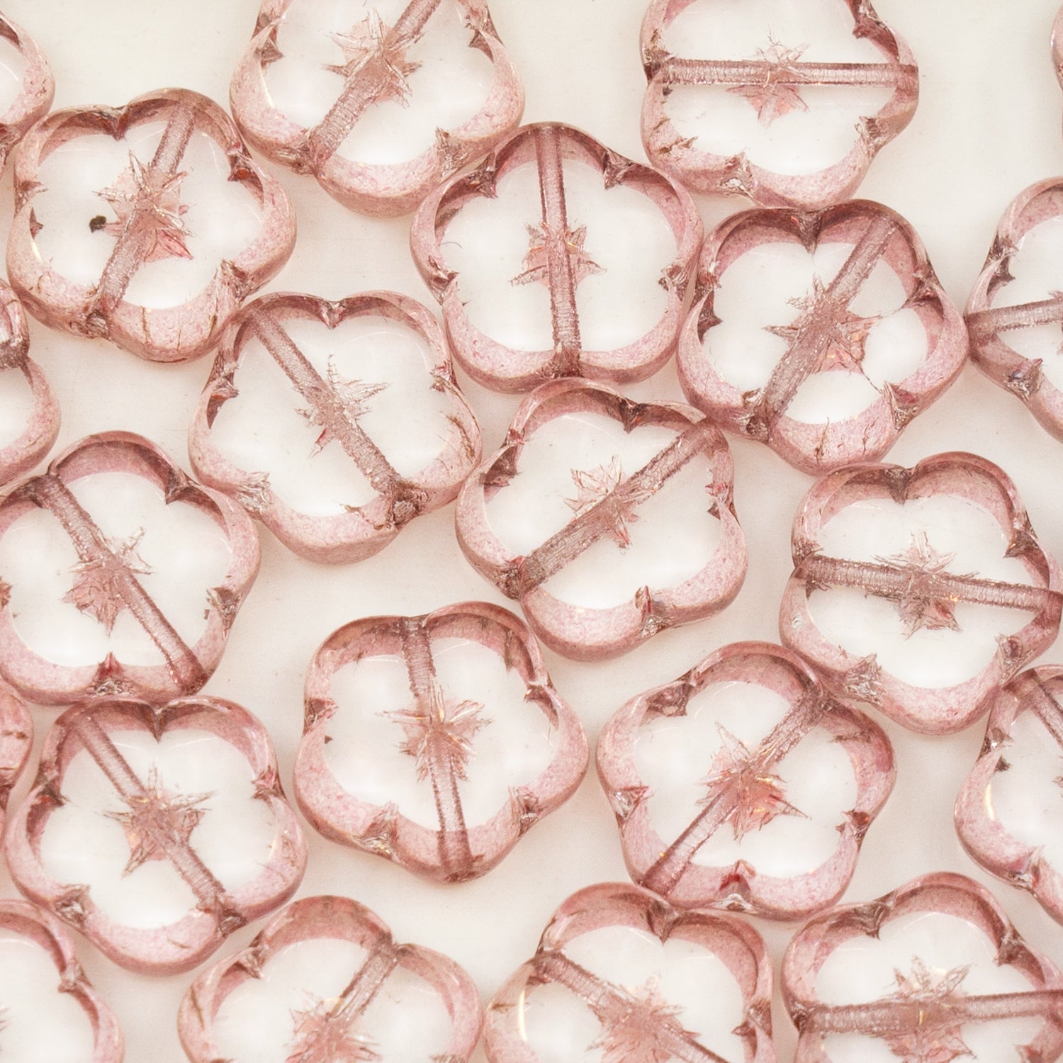 アウトレット 10グラム テーブルカットフラワービーズ、14 x 14 mm、クリスタルラスターリラ(00030-14494)、ガラス、チェコ共和国