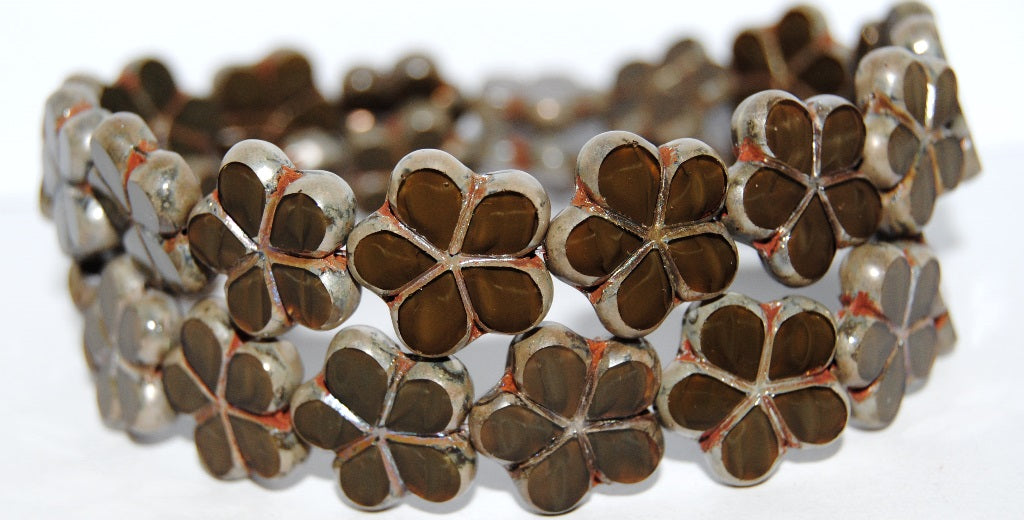 アウトレット 10グラム テーブルカットフラワービーズ、17 x 17 mm、ミックスブラウンクリスタルピカソ(16617-43400)、ガラス、チェコ共和国