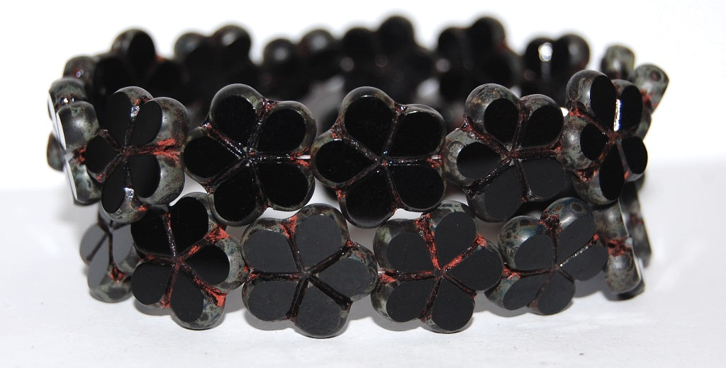アウトレット 10グラム テーブルカットフラワービーズ、17 x 17 mm、ブラックトラバーチン(23980-86800)、ガラス、チェコ共和国