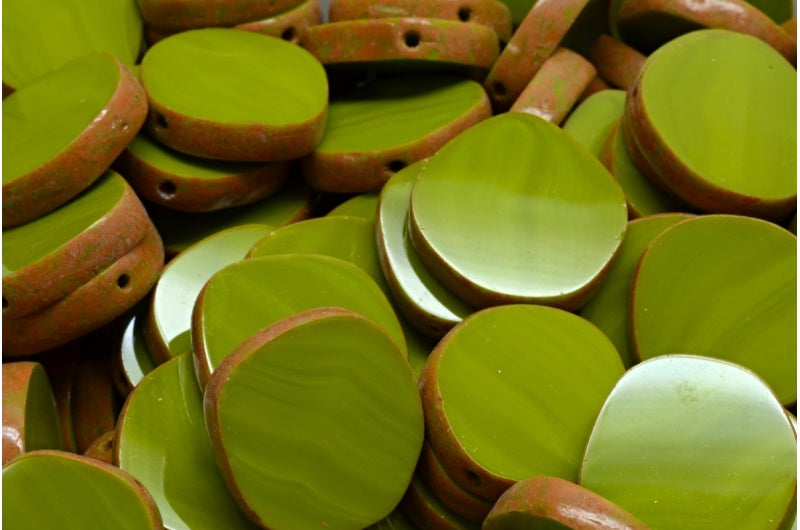アウトレット 10グラム テーブルカット 8エッジデザインビーズ、15 x 15 mm、グリーンオレンジスポット(53420-33302)、ガラス、チェコ共和国