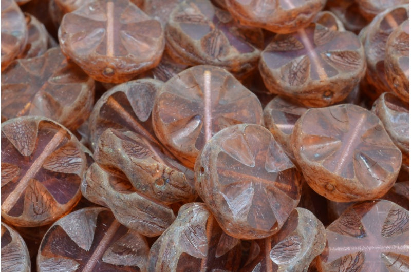 アウトレット 10グラム テーブルカットクロスビーズ、14 x 14 mm、オパールピンクトラバーチン(71000-86800)、ガラス、チェコ共和国