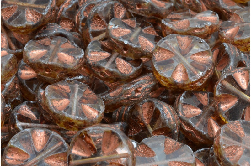 アウトレット 10グラム テーブルカットクロスビーズ、14 x 14 mm、クリスタルトラバーチン銅裏地(00030-86800-54319)、ガラス、チェコ共和国