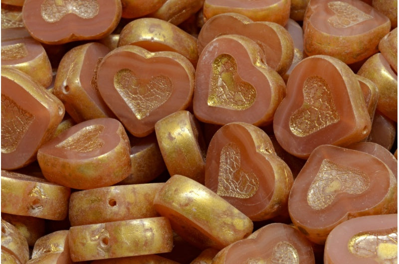 アウトレット 10グラム テーブルカットハートビーズ、14 x 12 mm、オパールピンクゴールドスプラッシュ(71111-86720)、ガラス、チェコ共和国