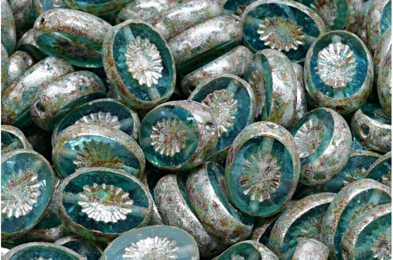 アウトレット 10グラム テーブルカットキウイビーズ、14 x 11 mm、透明アクアピカソ(60020-43400)、ガラス、チェコ共和国