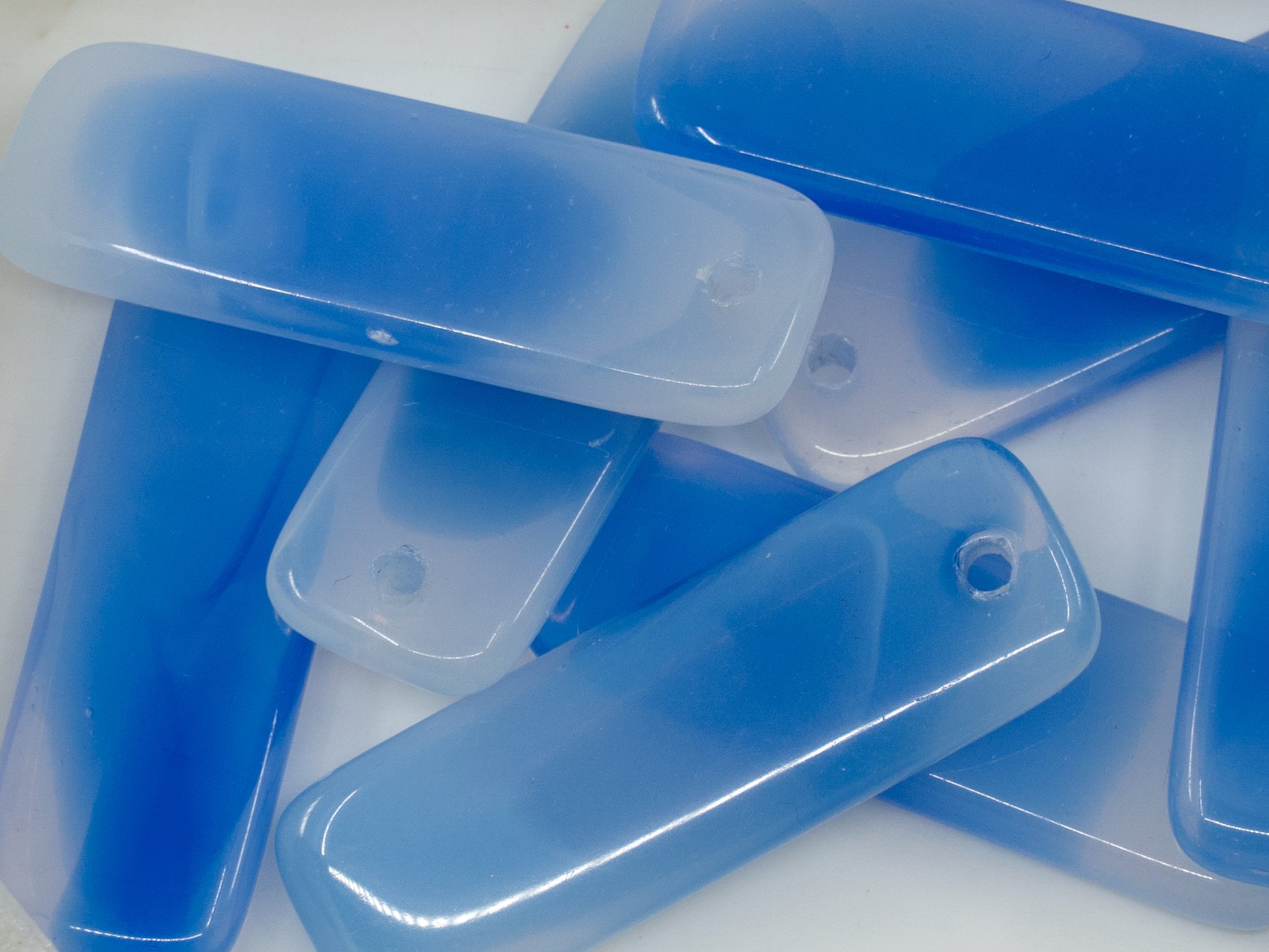 アウトレット 50g 長方形ペンダントビーズ、30 x 10 mm、青白ミックス、ガラス、チェコ