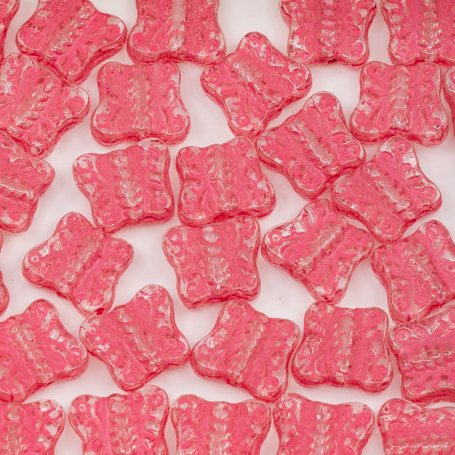 アウトレット 250g/50g バタフライビーズ、12x12 mm、クリスタルピンク (00030-54321)、ガラス、チェコ共和国