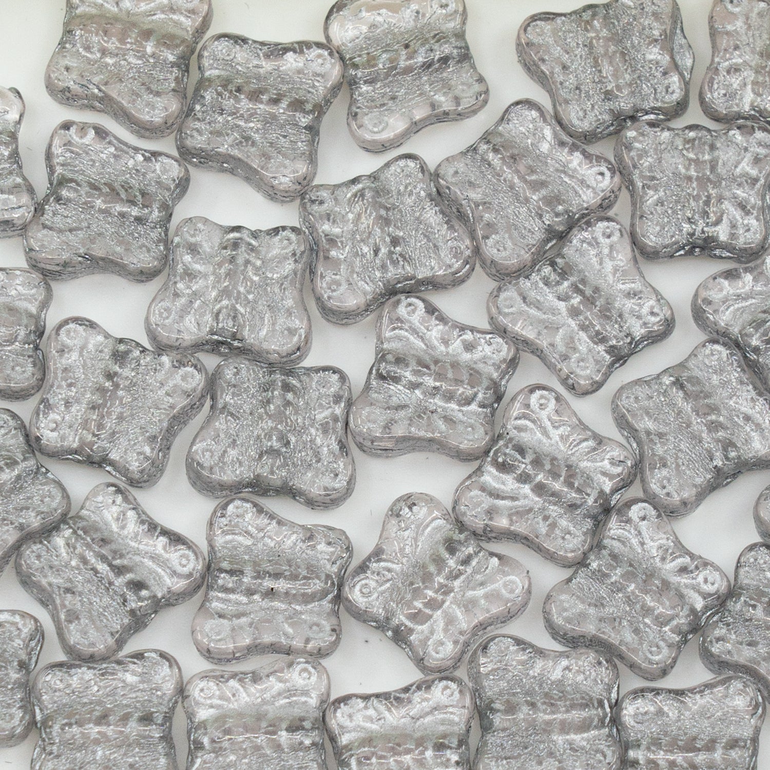 アウトレット 250g/50g バタフライビーズ、12x12 mm、ライトピンクシルバーライン(70100-54201)、ガラス、チェコ共和国