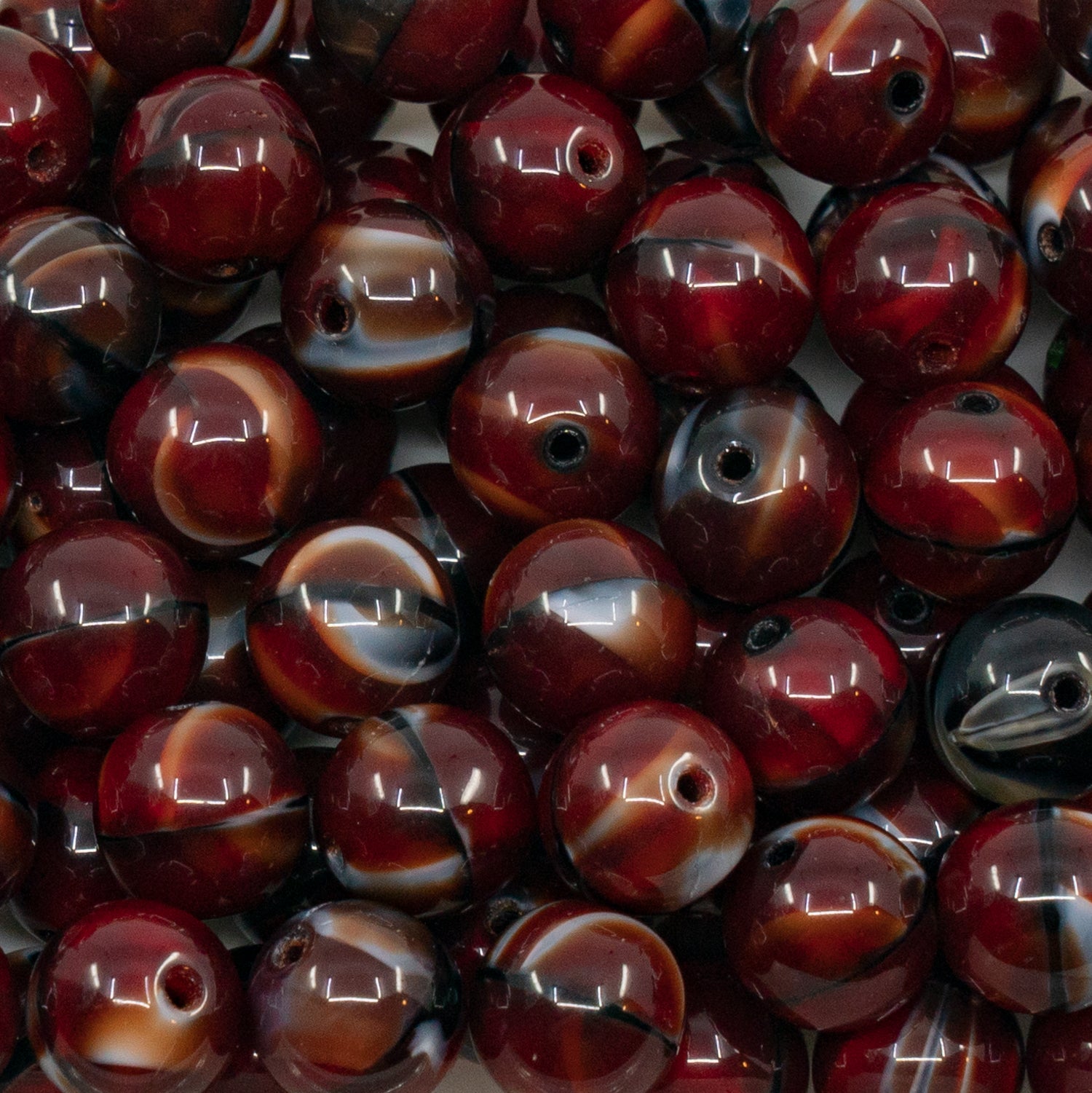 アウトレット 250g/50g ラウンドドラックビーズ、10 x 10 mm、ストライプダークレッド (26907)、ガラス、チェコ共和国
