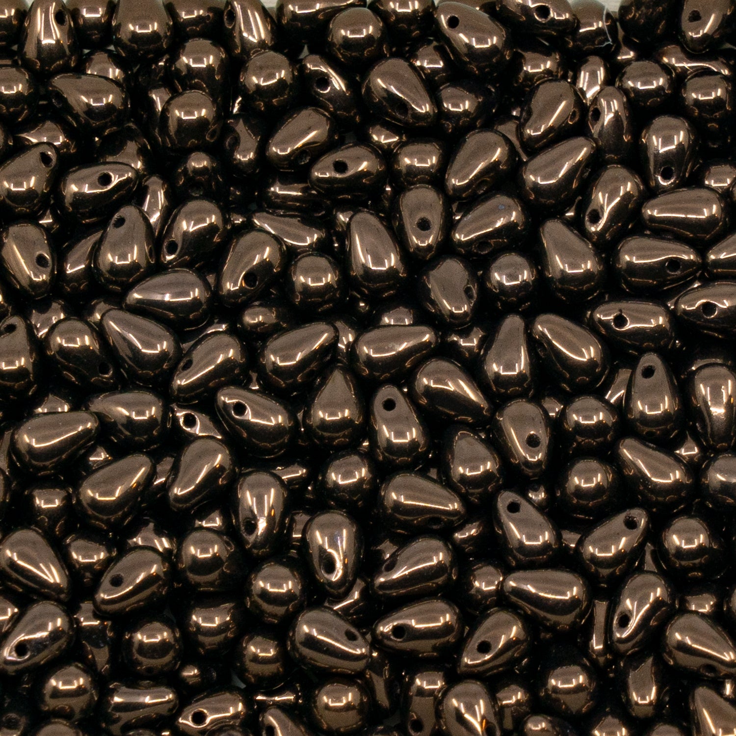 アウトレット 250g/50g ドロップビーズ、4 x 6 mm、ブラックブロンズ (23980-14415)、ガラス、チェコ共和国