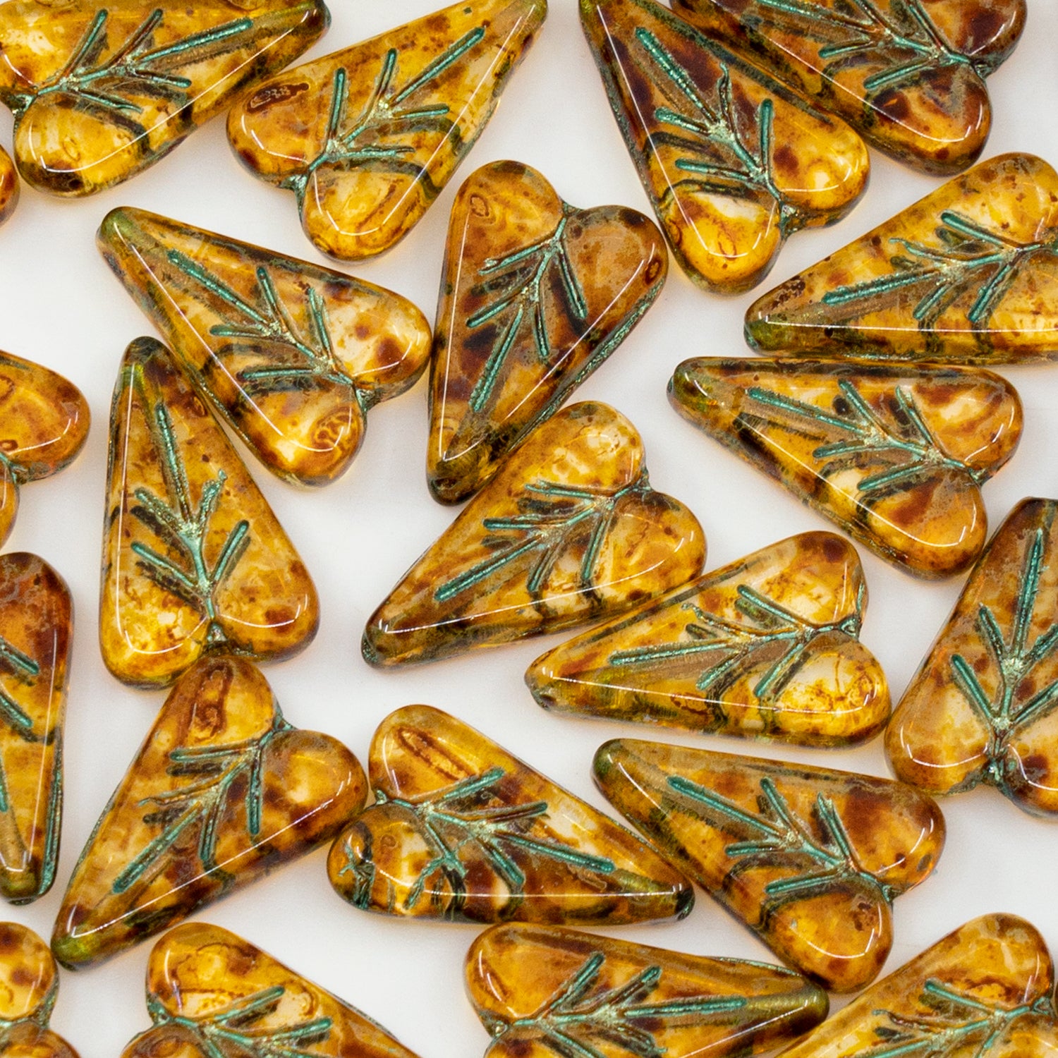 アウトレット 250g/50g ハートリーフビーズ、16 x 11 mm、クリスタルトラバーチングリーン (00030-86800-43813)、ガラス、チェコ共和国