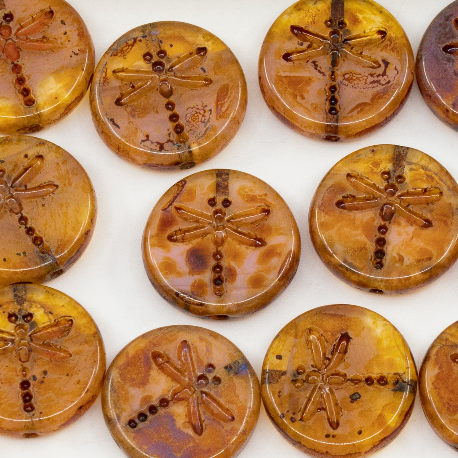 アウトレット 250g/50g 丸型フラットビーズ トンボ付き 17 x 17 mm 76010 Travertin (76010-86800) ガラス チェコ共和国