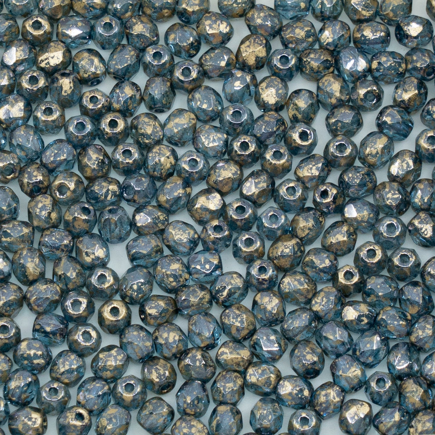 OUTLET 50g Faceted Round Fire Polished Beads, 4 x 4 mm, Blue Gold (), Glass, Czech Republic