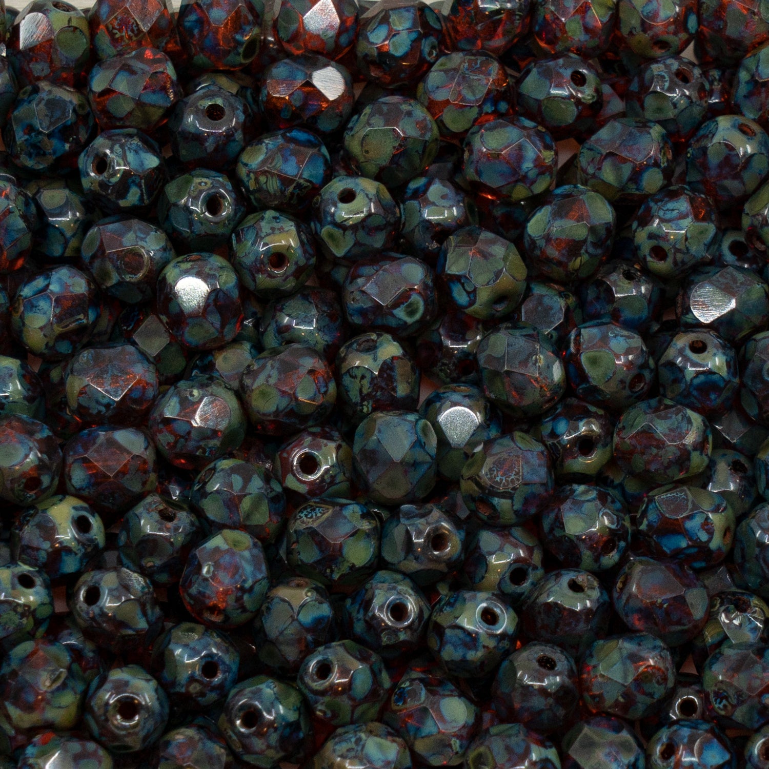 アウトレット(125g/250g)ファセットラウンドファイアポリッシュビーズ、透明オレンジトラバーチン(90020-86800)、ガラス、チェコ共和国