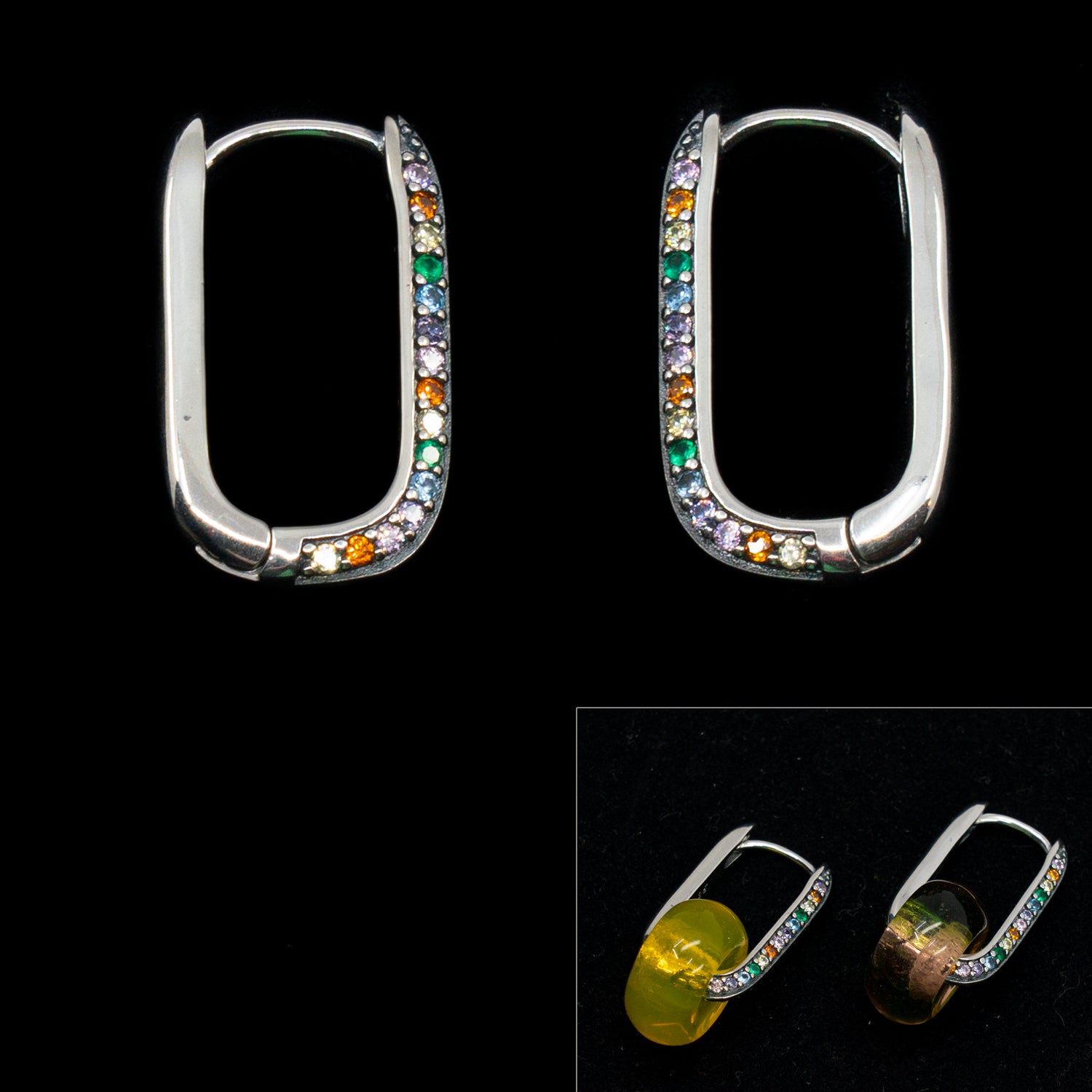 U-shaped Congo Hoop Earring Finding with Colored Zirconium , approx. 24x14 mm, Sterling Silver 925
