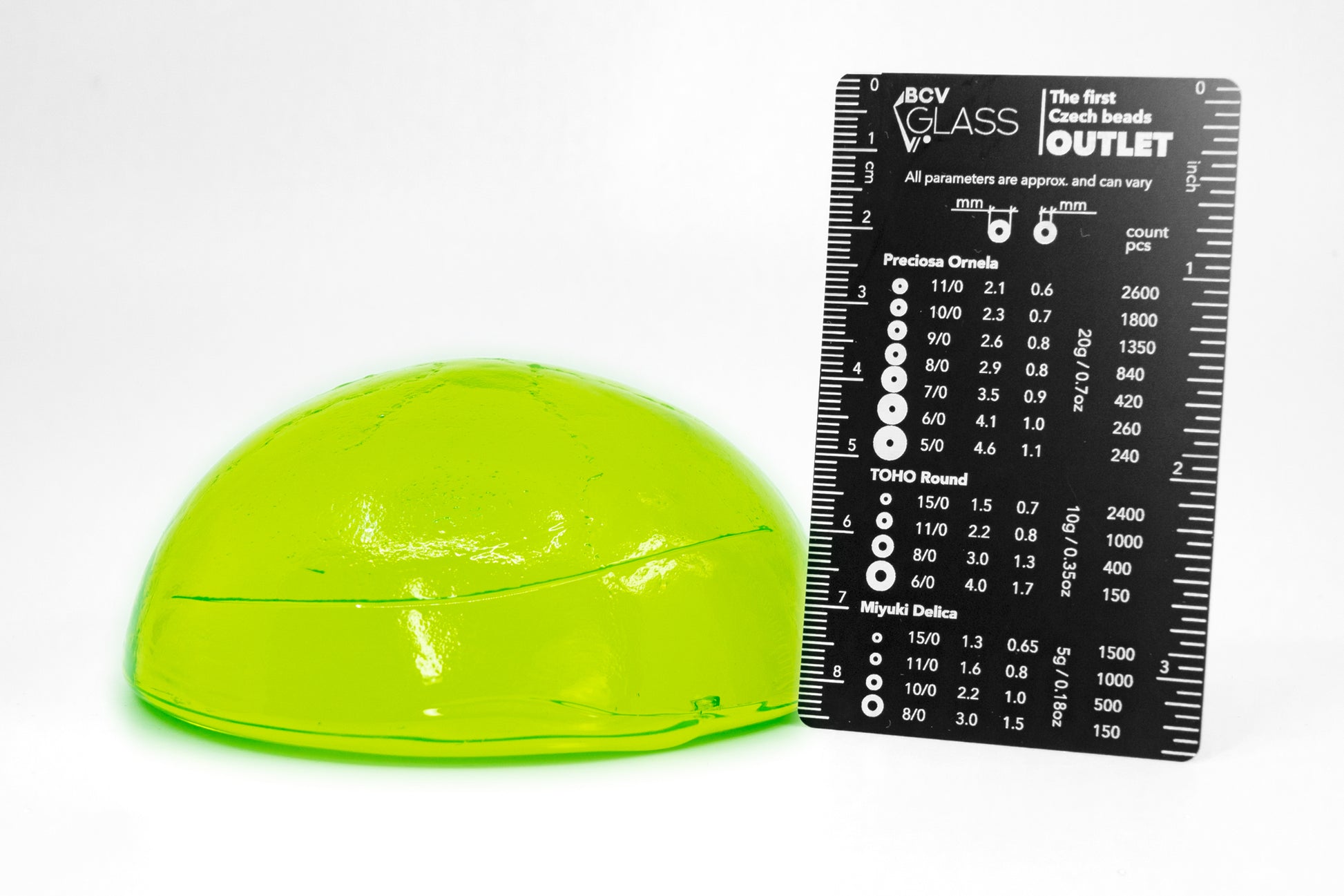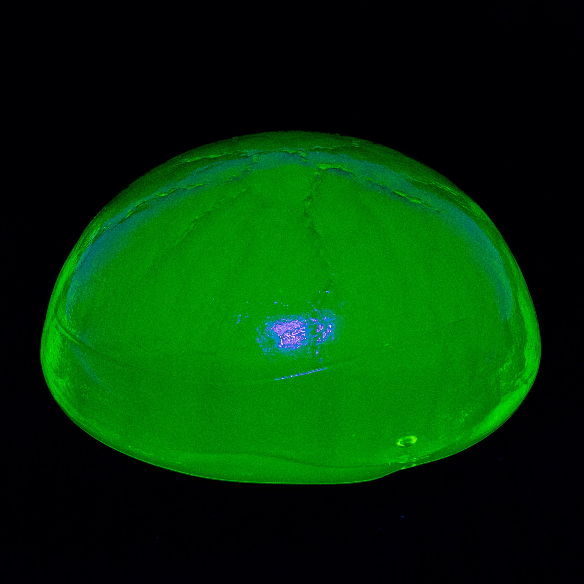 製品は、ワセリンガラスとも呼ばれる蛍光ウランガラスで作られています。