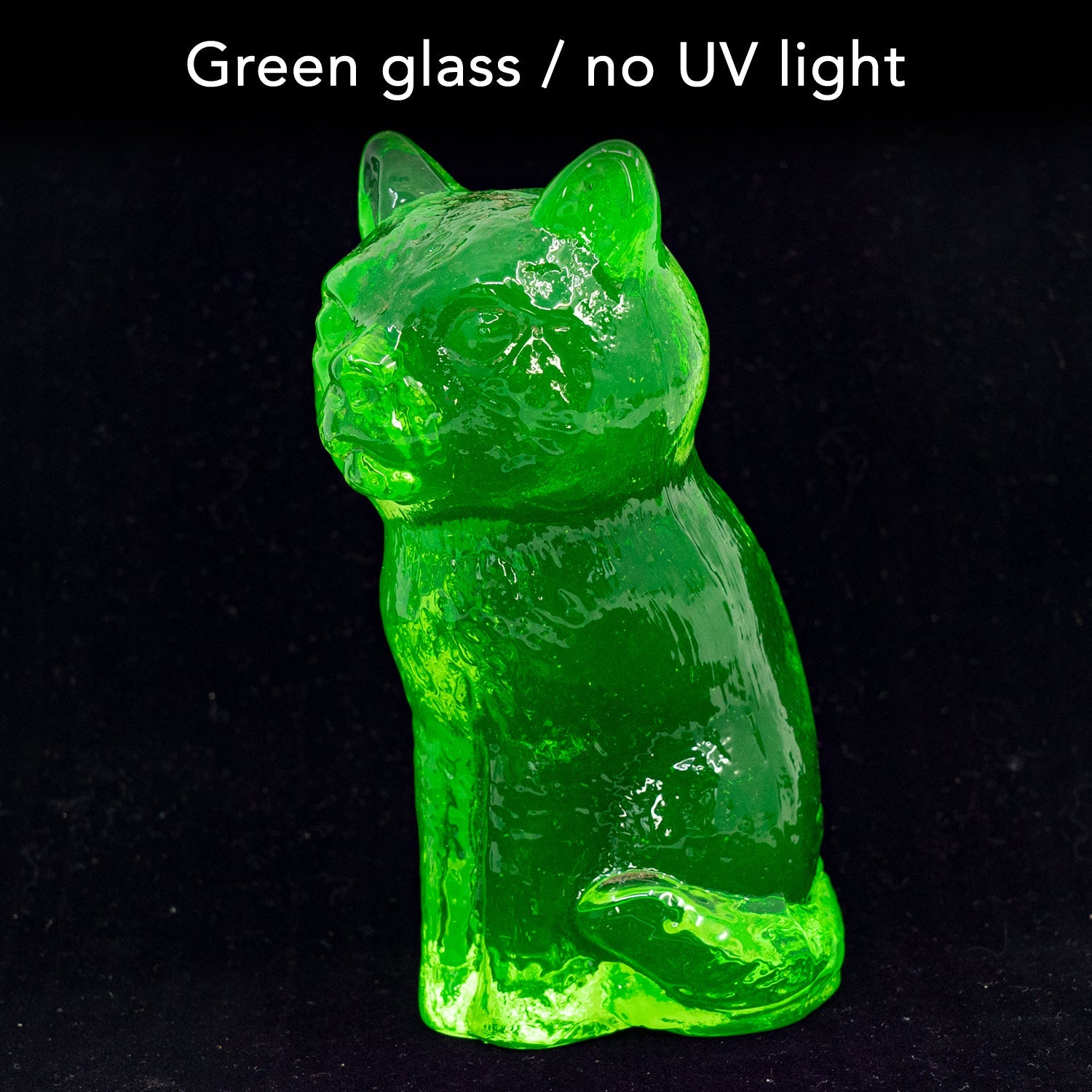 ウランガラスの猫 – 手作りUV反応アートフィギュア、チェコ共和国