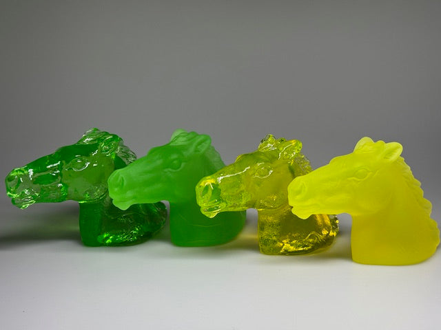 馬の写真は説明のみであり、白地にガラスの色を示しています