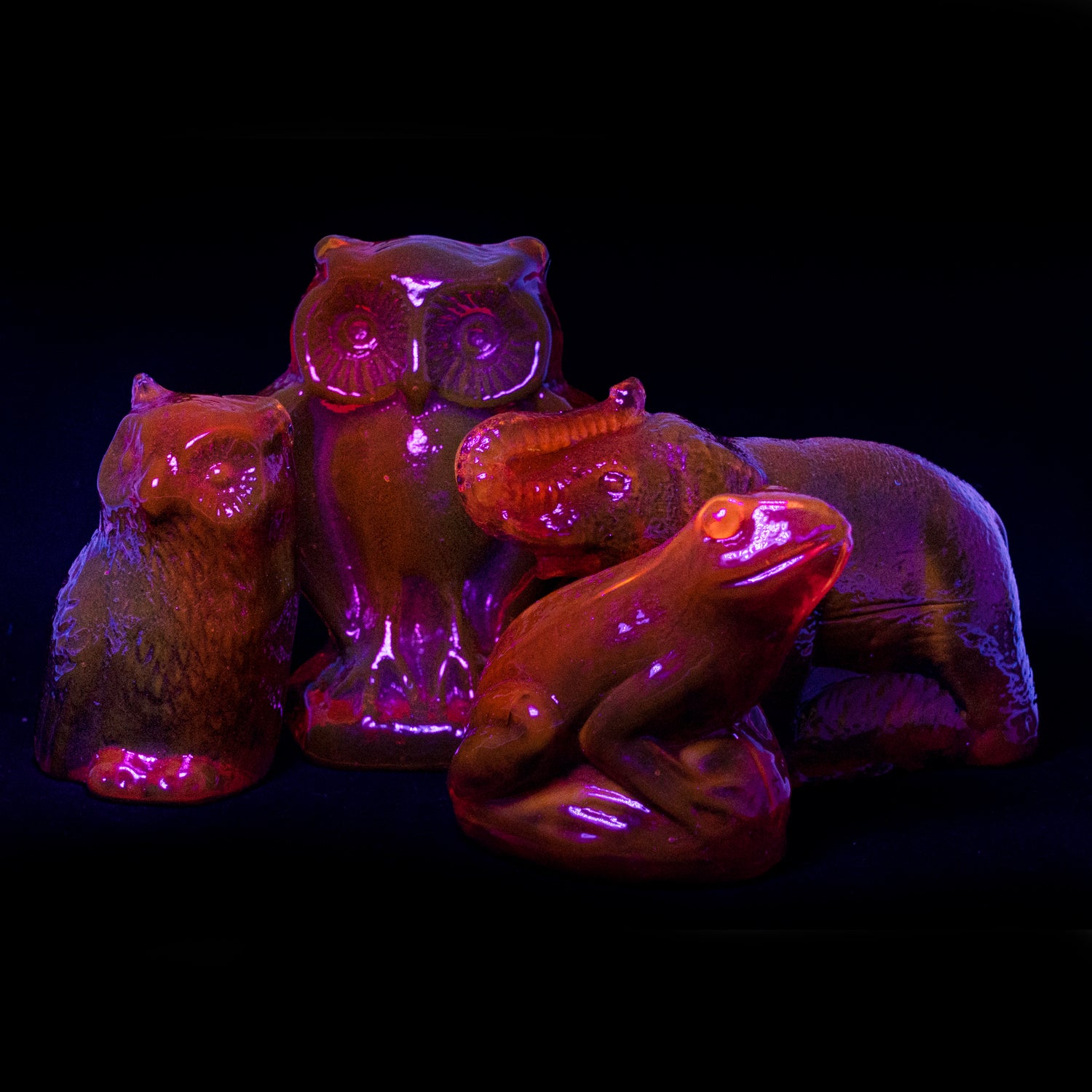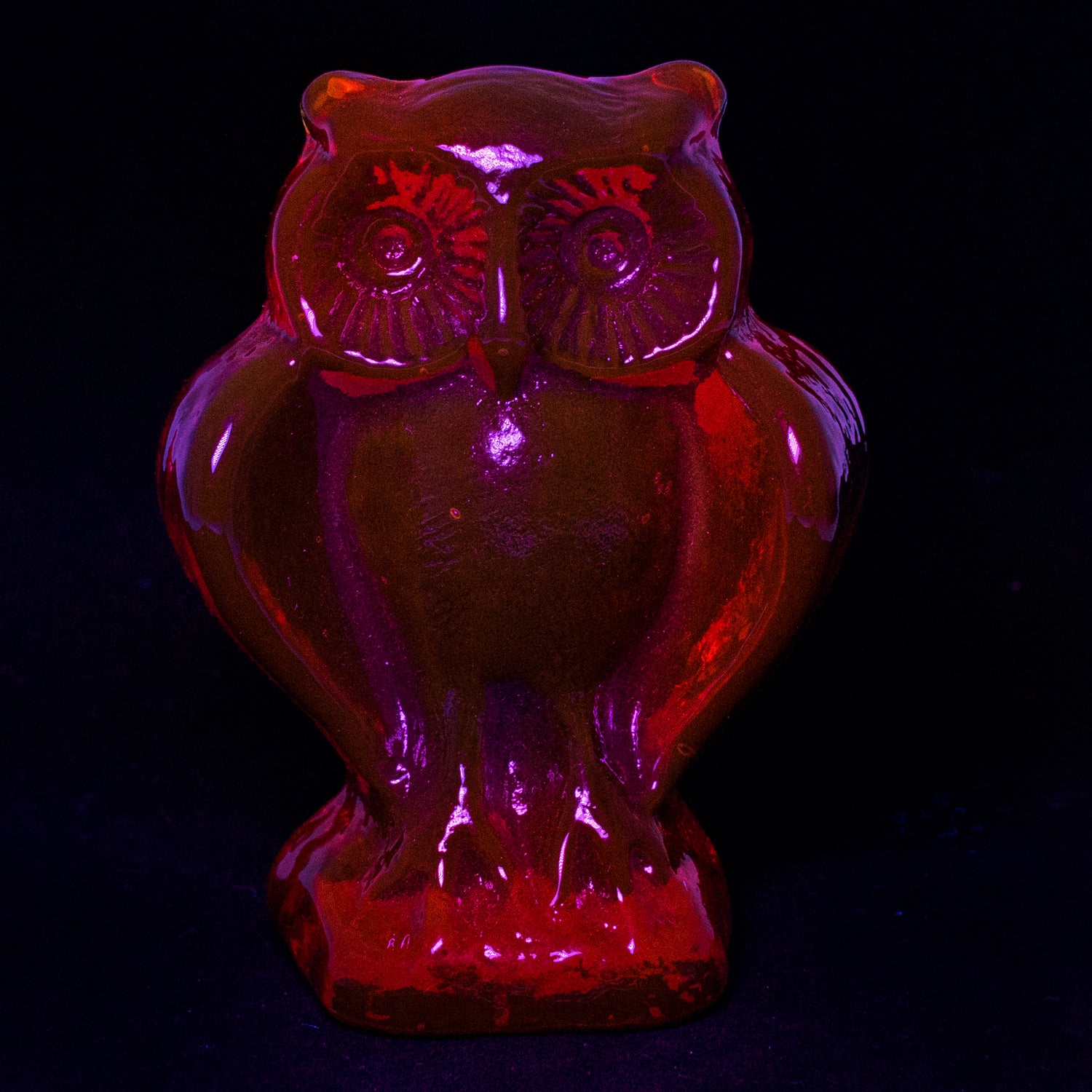 Cadmium Red Glass Statuette - Big Owl - Glow Under UV light