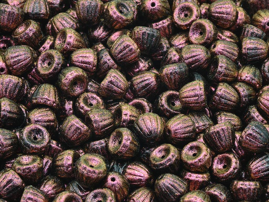 Flower Cupola Beads, Black Bronze Red (23980-12502), Glass, Czech Republic