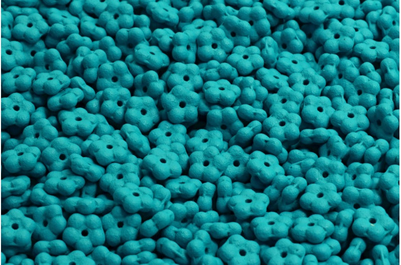 Forget Me Not Beads, White Bright Turquoise Matte (02010-22M18), Glass, Czech Republic