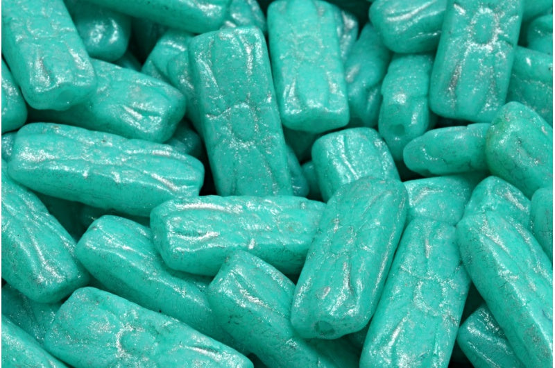 Flower Rectangle Beads, White Etched 34301 34309 (02010-etch-34301-34309), Glass, Czech Republic