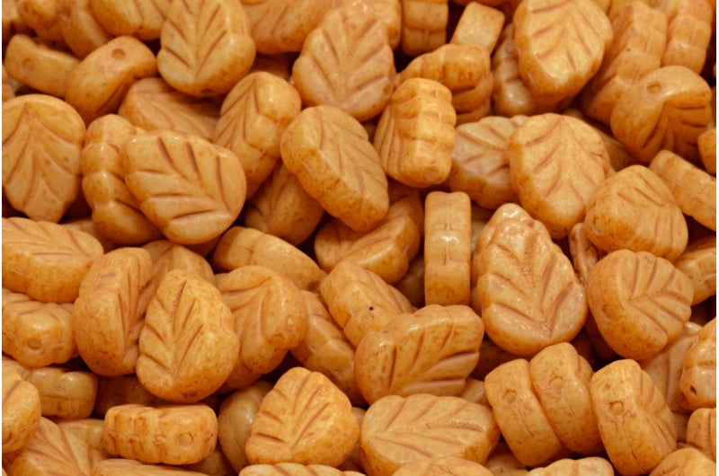 Mint Leaf Beads, White 84311 (02010-84311), Glass, Czech Republic
