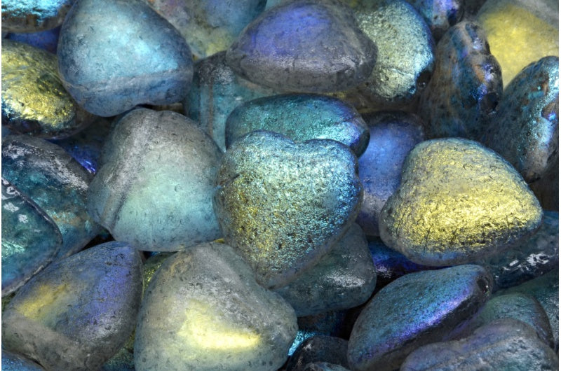 Heart Bead With Side Hole, Crystal Etched Ab Light Gray (00030-etch-28701-34311), Glass, Czech Republic
