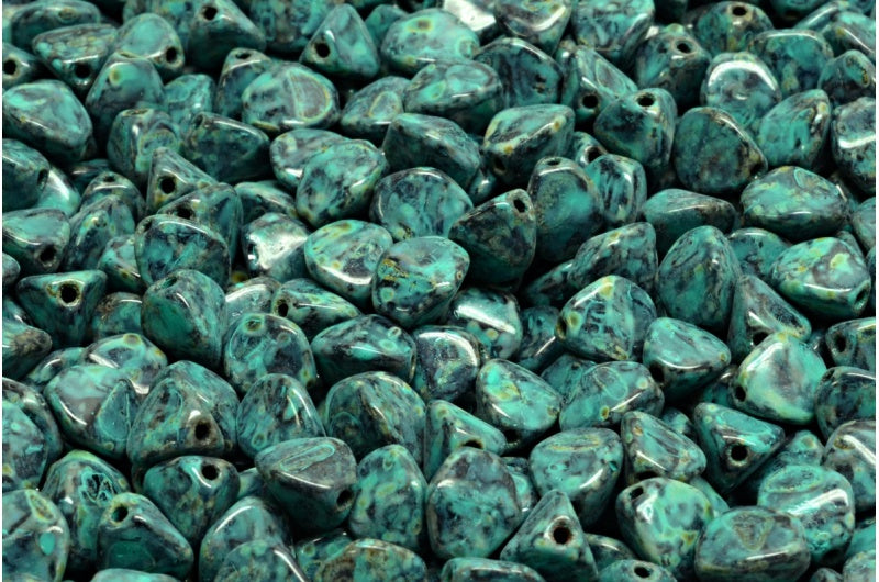 Pinch Beads, Black Travertin Turqouise Spotted (23980-86800-33310), Glass, Czech Republic