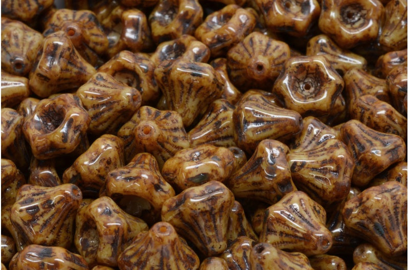 Flower Bell Beads, Beige Stain Strong (13020-86805), Glass, Czech Republic