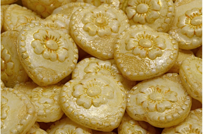 Heart Beads With Rose, White 34302 (02010-34302), Glass, Czech Republic