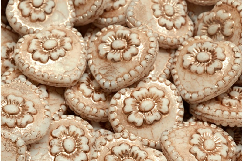 Heart Beads With Rose, White Copper Lined (02010-54324), Glass, Czech Republic