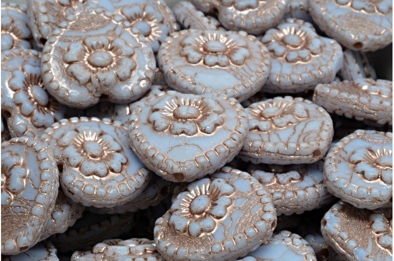 Heart Beads With Rose, Light Blue Copper Lined (33000-54324), Glass, Czech Republic