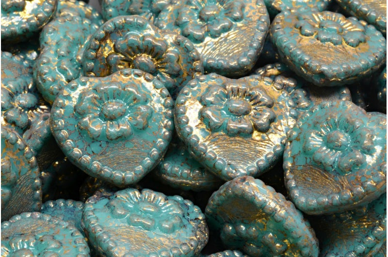 Heart Beads With Rose, Turquise Terracotta Violet (63140-15496), Glass, Czech Republic
