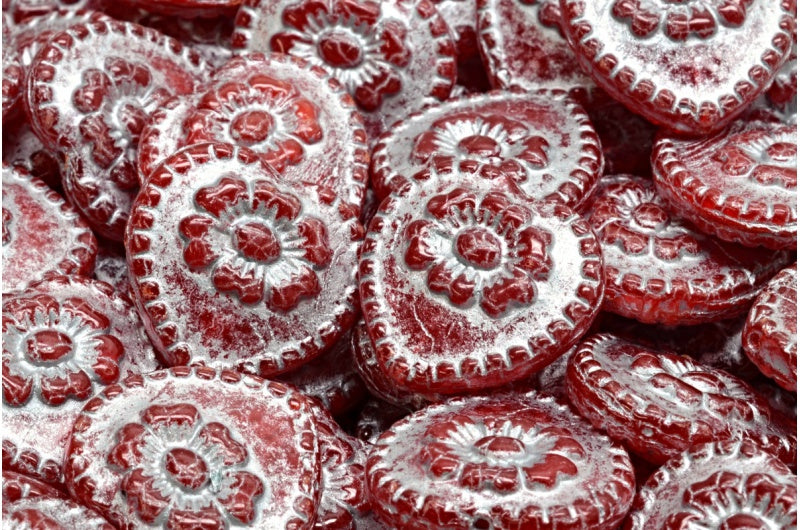 Heart Beads With Rose, Opal Red Silver Lined (91240-54301), Glass, Czech Republic