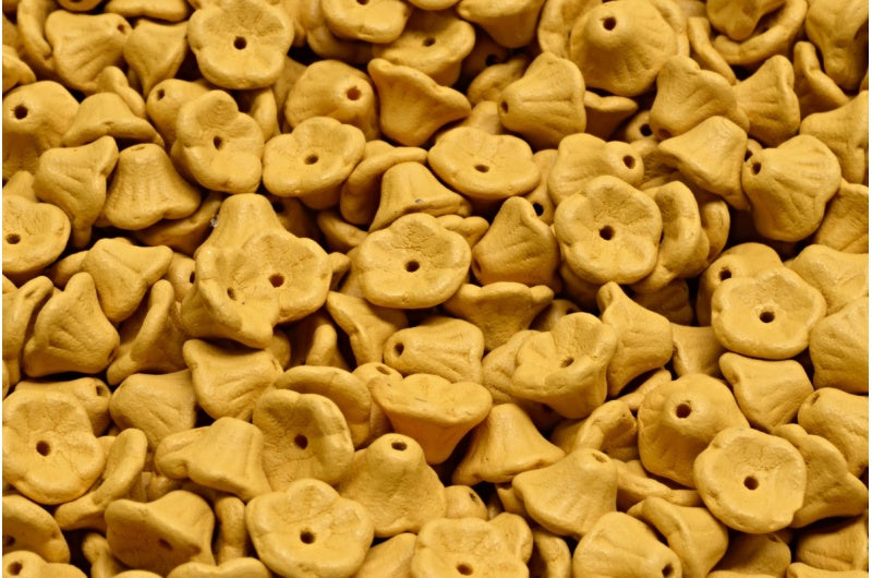 Bell Flower Cup Beads, White Bright Dark Yellow Matte (02010-22M03), Glass, Czech Republic