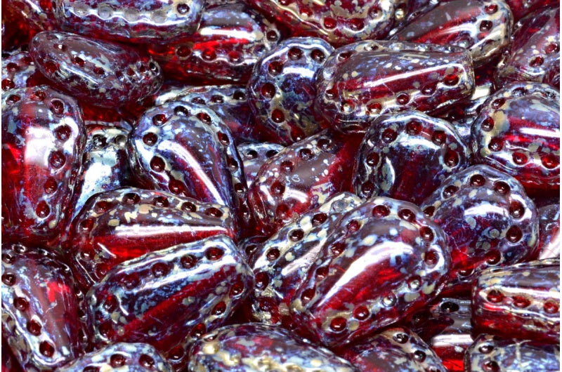 Lacy Tear Beads, Ruby Red 43500 (90080-43500), Glass, Czech Republic