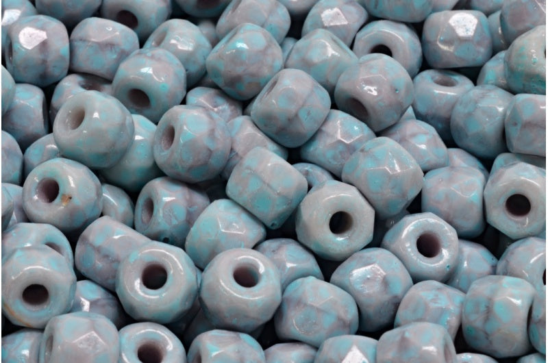 Faceted Pony Bagel Beads, Silk Lavender Turqouise Spotted (24010-33309), Glass, Czech Republic